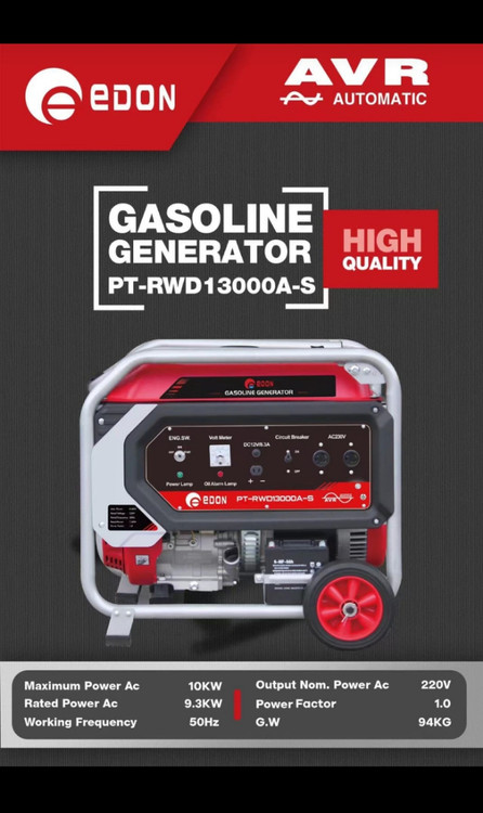 موتور برق 10 کیلوات بنزینی ادون مجهز به استارت الکتریکی...سیمپیچی تمام مس سیستم AVR....وزن تقریبا. 94 کیلوگرم....دارای چرخ و دسته...یک موتور برق فوق العاده با کیفیت و قدرتمند....برای برطرف کردن نیاز برق و کاملا مفید و سودمند برای برق اضطراری....